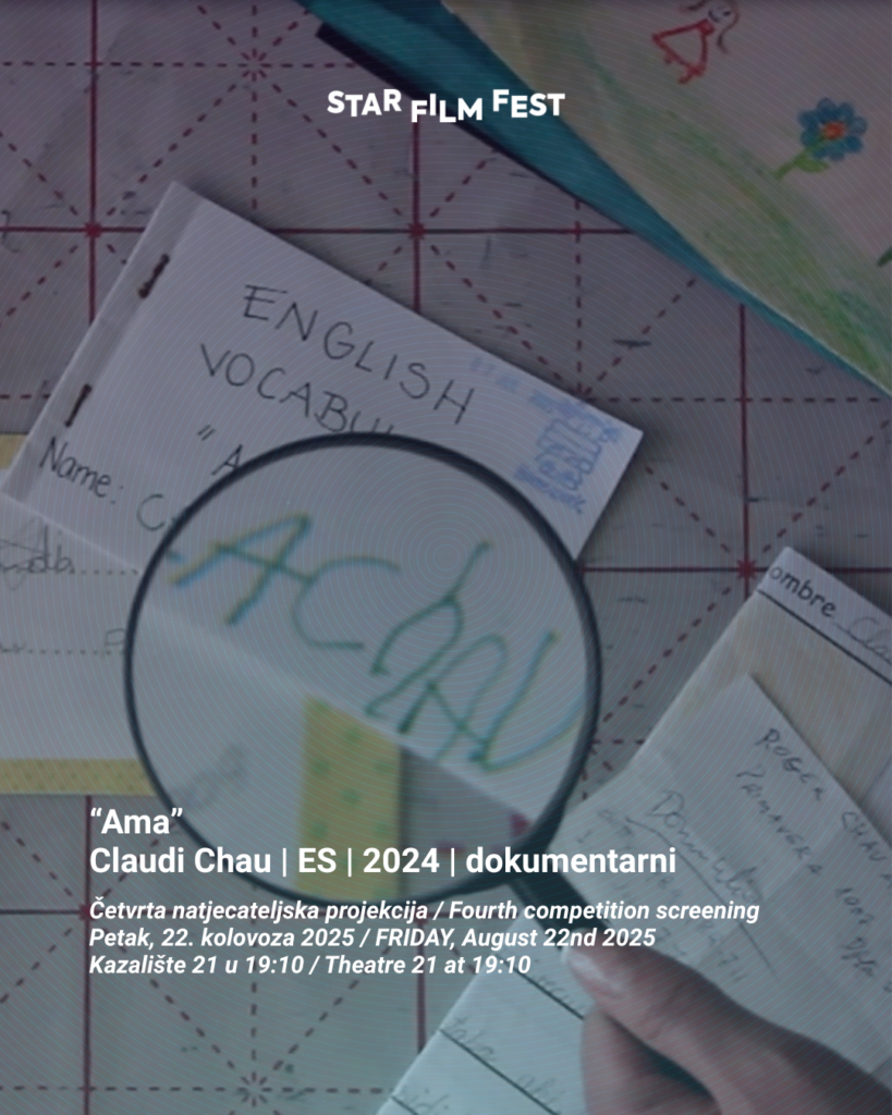 Dokumentarni “Ama” Claudie Chau propituje načine gubljenja identiteta kroz imena koja su kineskoj kulturi dio naslijeđa. U filmu sama autorica počinje istraživati prezime svoje obitelji i pravo ime svoje bake na kineskom, koju poznaje kao Amu.
