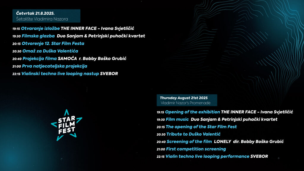 Večeras, 21. kolovoza, počinje 12. izdanje Star Film Festa, koje će kroz tri dana okupiti filmaše i filmske entuzijaste u gradu Sisku. Ovogodišnje izdanje posvećeno je pokretu – kao temelju filmske umjetnosti, ali i kao metafori stalne promjene i napretka kroz koje festival prolazi od svojih početaka. Svaki kadar, svaki rez i svaki pogled nose energiju pokreta, a upravo njemu Star Film Fest ove godine daje posebno značenje.